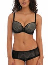 デイリーランジェリーをアップデート! 幾何学模様のメッシュレースを合わせたスタイリッシュなデザインです。