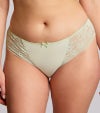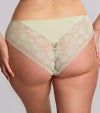 フロントからバックにかけてストレッチレースをあしらった、軽やかな印象のブラジリアンブリーフ。春らしい透け感のあるレースがヒップラインを美しく引き立て、フェミニンで洗練された雰囲気を演出します。ストレッチ性に優れた素材がボディにやさしくフィットし、快適なはき心地を実現。ブラジリアンカットがほどよいカバー力とすっきりとしたシルエットを両立し、デイリーにも取り入れやすい一枚に仕上げました。