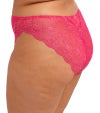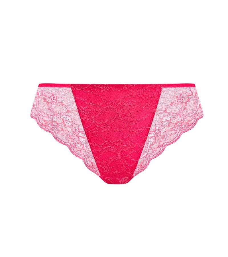 繊細なアウトラインが映える、三色使いのストレッチレースを使用した華やかなデザイン。ハイレッグシルエットが脚をすっきりと長く見せ、フロントにはストレッチメッシュの裏打ちを施すことで、透け感を抑えた安心感のある仕上がりです。