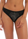 Tailoredのブラジリアンブリーフ は、セクシーで洗練されたブラジリアンスタイル。フロントにはストレッチ性のある幾何学レースを使用し、肌に寄り添うしなやかなフィット感を実現しています。バックは折り返し仕様で、アウターにラインが響きにくいすっきりとした仕上がりに。ウエストとレッグラインにはシャドウストライプのフラットエラスティックを配し、繊細な表情を添えています。
