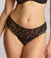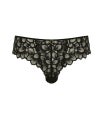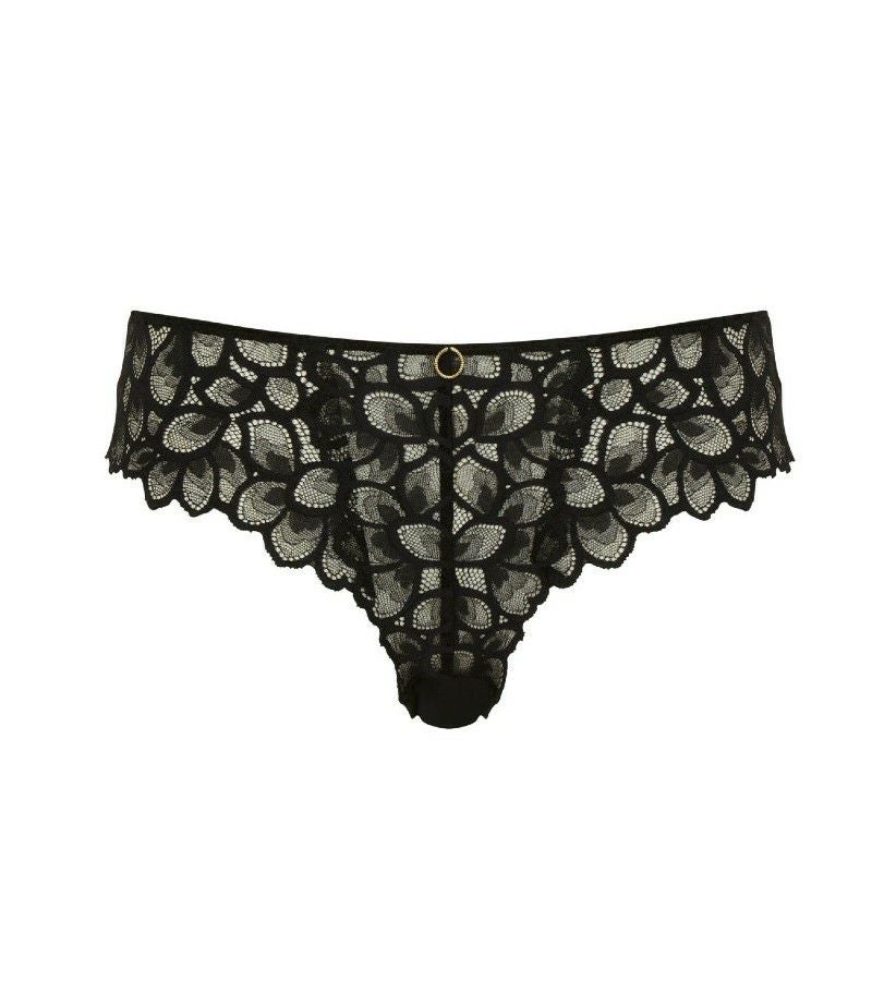 肌馴染みがよく、ブラックレースと綺麗なコントラストになるラテカラーの裏地つき。レースが360度素敵なブリーフスタイルです。