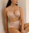 ソフトタッチの生地にモダンなフラットレースとコンテンポラリーなグラフィックデザインを組み合わせました。クリーンでステッチのない仕上げが、まるで第二の肌のような滑らかな着心地を提供し、パンツラインが目立ちません。レースに組み込まれた伸縮バンドが、前ウエストにフラットでクリーンな仕上がりを実現します。お腹部分には裏地を施し、軽いサポートとスムージング効果を提供します。