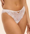 繊細なレースと洗練されたディテールが魅力の「Fascinate」ブリーフ。フロントからバックにかけてあしらわれた美しいアイラッシュレースが、やわらかなフェミニンさとさりげない華やかさを演出します。装飾的なメッシュやセンターフロントのキーホール、ゴールドトーンのチャームがアクセントとなり、上品で印象的なデザインに仕上がっています。