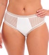 ホワイトカラーのフュージョンブリーフでコーディネートを完成させましょう。コンテンポラリーなストライプジャカード生地を使用し、前面には裏地を付けて透けにくい仕様にしました。フラットなゴムウエストが服の下で滑らかな仕上がりを実現します。