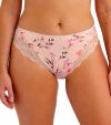 フェミニンな魅力と快適なはき心地を兼ね備えたブリーフ。フロントからバックにかけてやさしい肌ざわりのプリント生地を使用し、心地よくフィットします。