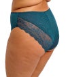 バックレッグにはストレッチレースを、背面全体にはストレッチメッシュを使用し、モダンで洗練された印象のハイレグブリーフです。バックとサイドフロントは二重のストレッチメッシュで透け感を抑えつつ、軽やかな着心地を実現。フロント中央には柔らかなストレッチポリエステルのプリント生地を使用し、華やかさをプラスしています。バックレッグの縁は縫い目を排したフラット仕上げで、アウターに響きにくく、なめらかなラインをキープします。