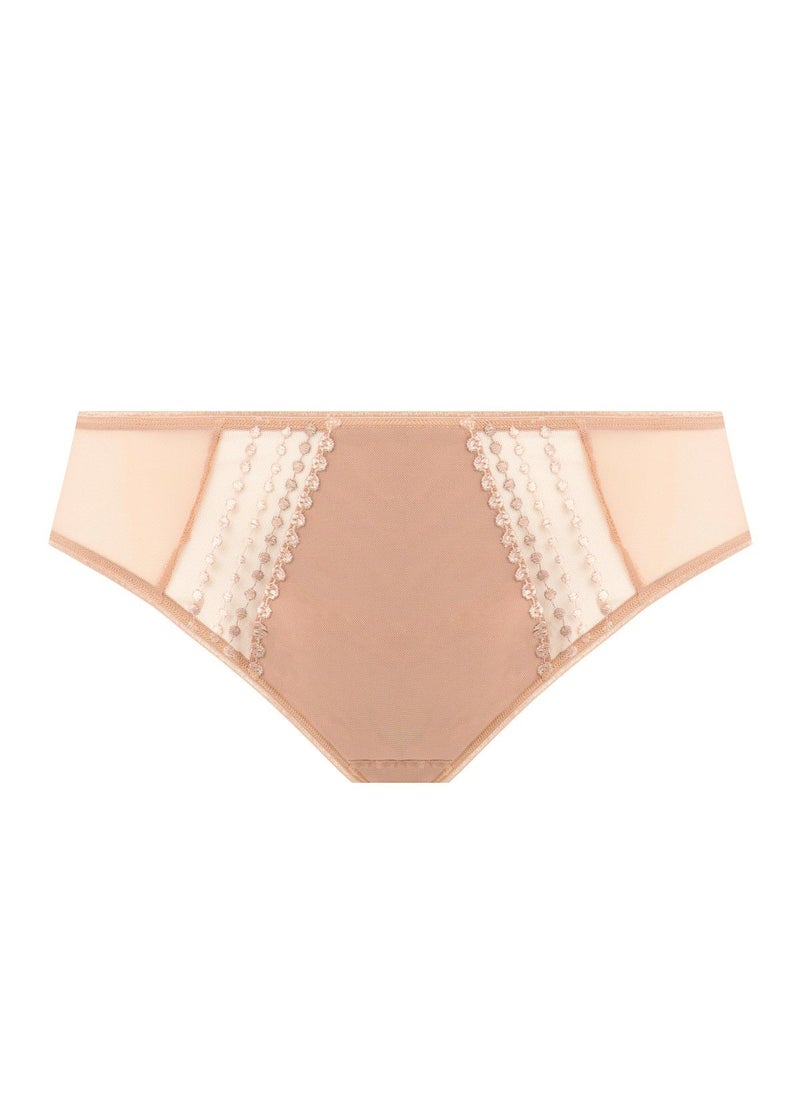 シアー生地を背面に使ったスタンダード型ブリーフです。刺繍が素敵なデザイン。コットンクロッチ付きで安心の履き心地です。