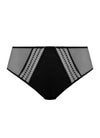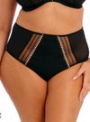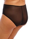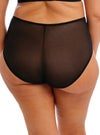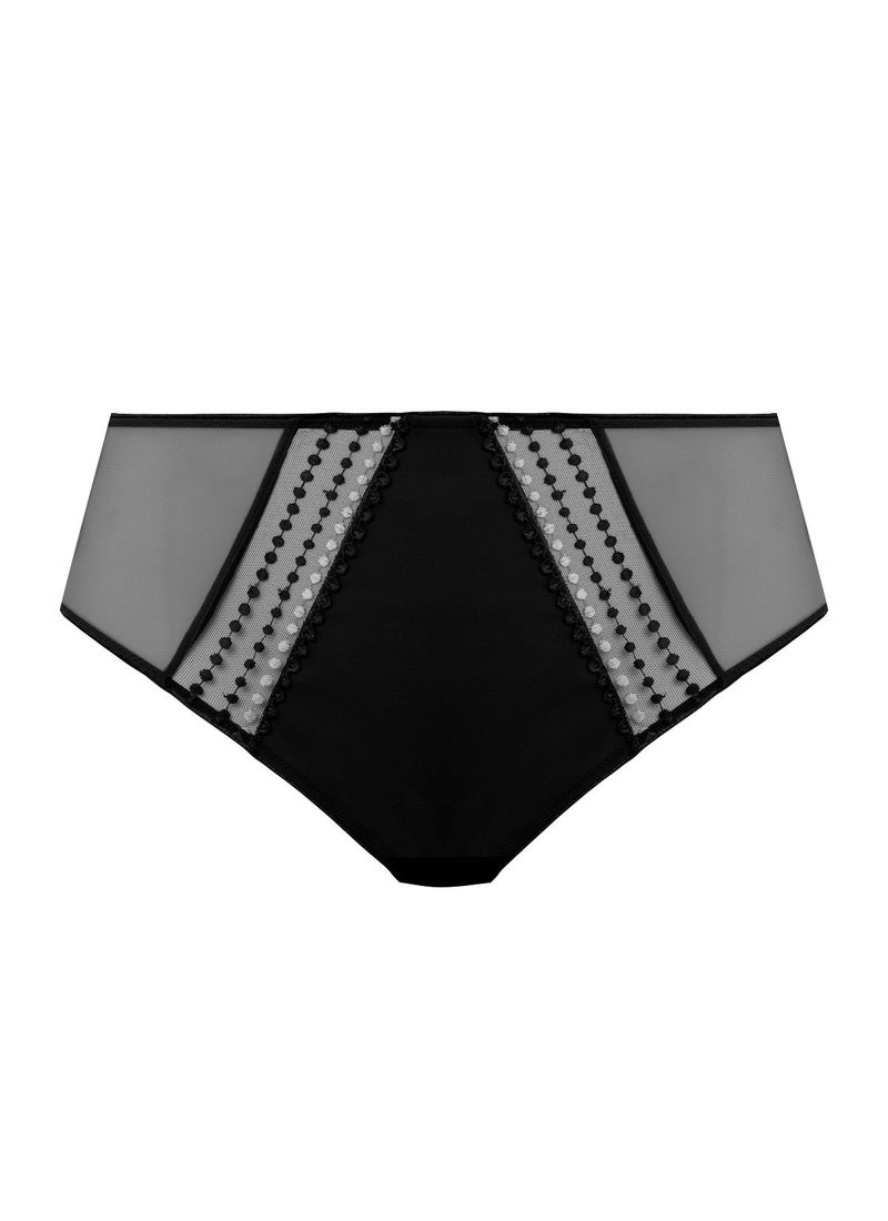 シアー生地を背面に使い、ウエストラインがやや高めに作られたフルブリーフです。腰回りがすっぽりと隠れ、お腹辺りまでカバーしてくれます。刺繍が素敵なデザイン。コットンクロッチ付きで安心の履き心地です。