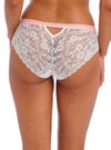 総レース(ストレッチレース)で柔らかな履き心地のブリーフ。透け感のあるセクシーなデザインです。バックスタイルは、ブリーフラインがうつりにくい特殊なウェーブカット。