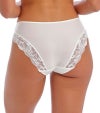 ソフトタッチで肌心地のよい生地を使ったスタンダード型ブリーフ。ウエスト回り、ヒップラインにレースをあしらった華やかなデザインに仕上がっています。センターフロントにシルバーのチャーム付き