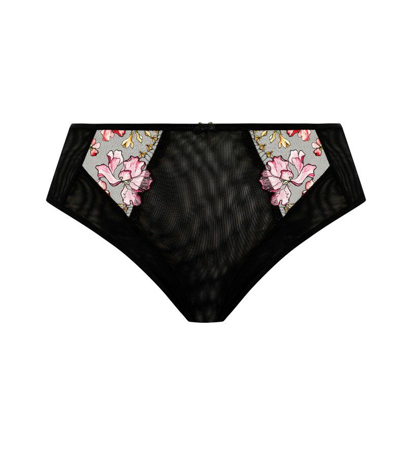 前面と背面の上部には、控えめなデザインを実現するためにダブルレイヤーのストレッチメッシュを使用しています。前面のレースパネルには、精密なプリント刺繍と柔らかいメタリック糸のディテールが施されています。ウエスト部分とバックキーホールには、滑らかなサテン調のゴムを使用し、前面と背面にはリボンのディテールが加えられています。