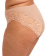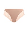 フロントとバックにはストレッチメッシュの裏地を施し、透け感を抑えながら安心感のあるはき心地に。脚口には伸縮性に優れたレースを使用しているため、ラインがひびきにくく、なめらかなシルエットを演出します。さらにクロッチ部分のゴムはくるみ仕様で、肌あたりがやさしく、一日中快適にお過ごしいただけます。