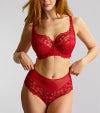 サイズ感と美しさの両立が難しいと感じがちな、特にボリュームバストの方にも自信をもっておすすめできるのが、ベストセラーの「Allure」コレクション。今シーズンは、装いに華やぎを添えるトゥルーレッドで登場。グラフィカルなレースデザインを引き立てる、ツートーンのリサイクルレースを用い、染色技法によって上品な艶感をまとわせています。特別感のある仕上がりでありながら、日常にも寄り添う一着です。