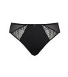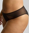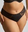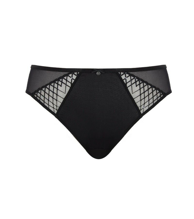 このハイレグブリーフは、バックに大胆なクロスデザインを施し、洗練されたシルエットを際立たせます。フロントには、シークインを繊細に散りばめたシアーパネルが輝きを放ち、透け感のある軽やかな魅力を演出。肌に優しくフィットする上質な素材が、日常の動きを優雅に支え、どんな瞬間も自信と華やかさを与えます。