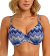 こちらのワイヤー入りプランジビキニは、デコルテを美しく際立たせるセクシーな深めのVネックラインが魅力。ライニングを施したアンダーワイヤーカップが、バストをしなやかに整えながらしっかりとサポートします。ショルダーストラップは長さ調節可能な仕様で、体に合わせたフィット感を自在に調整可能。生地にはトレンドのメタリックゴールド糸を織り込み、さりげない輝きがラグジュアリーな印象を添えます。