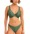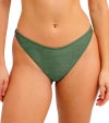 〈Arizona Wave〉の〈Fern〉で、ビーチでもひときわ印象的なスタイルを。陽射しに包まれたリゾートのひとときや、豊かなトロピカルの景色を思わせるボタニカルグリーンが魅力です。深みのあるアーシートーンが、スイムウェアコレクションに上品さと温かみを添え、メタリック糸やゴールドカラーのハードウェアディテールが華やかなアクセントに。