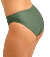 腰位置で自然にフィットするデザインに、脚ぐりはすっきりと見えるカッティングでバランスのよいシルエットを演出します。ヒップ部分はしっかりとカバーする設計で、安心感のあるはき心地に。生地にはトレンド感のあるシルバーカラーのメタリック糸を織り込み、さりげない輝きを添えています。
