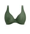 〈Arizona Wave〉の〈Fern〉で、ビーチでもひときわ印象的なスタイルを。陽射しに包まれたリゾートのひとときや、豊かなトロピカルの景色を思わせるボタニカルグリーンが魅力です。深みのあるアーシートーンが、スイムウェアコレクションに上品さと温かみを添え、メタリック糸やゴールドカラーのハードウェアディテールが華やかなアクセントに。
