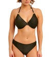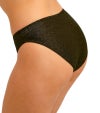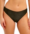 腰位置で自然にフィットするデザインに、脚ぐりはすっきりと見えるカッティングでバランスのよいシルエットを演出します。ヒップ部分はしっかりとカバーする設計で、安心感のあるはき心地に。生地にはトレンド感のあるゴールドカラーのメタリック糸を織り込み、さりげない華やかさを添えています。