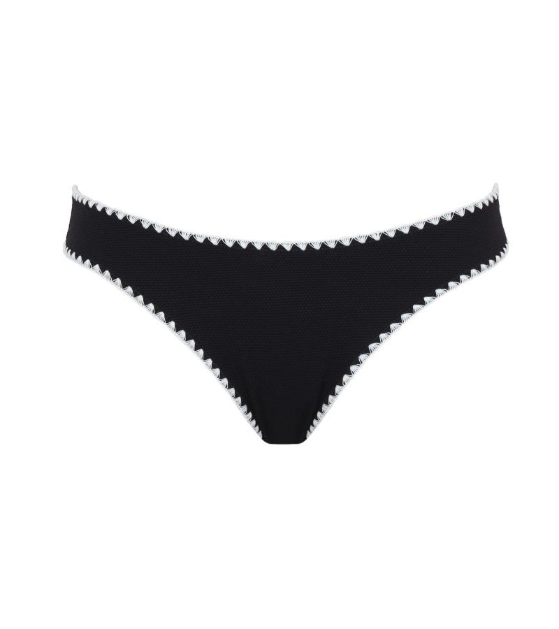 ヒップに自然にフィットするデザインで、安定感のあるはき心地を実現します。洗練されたバランスで、プールサイドでも上品でシックな印象を演出します。エッジにはホワイトのウィップステッチをあしらい、軽やかなアクセントをプラスしました。