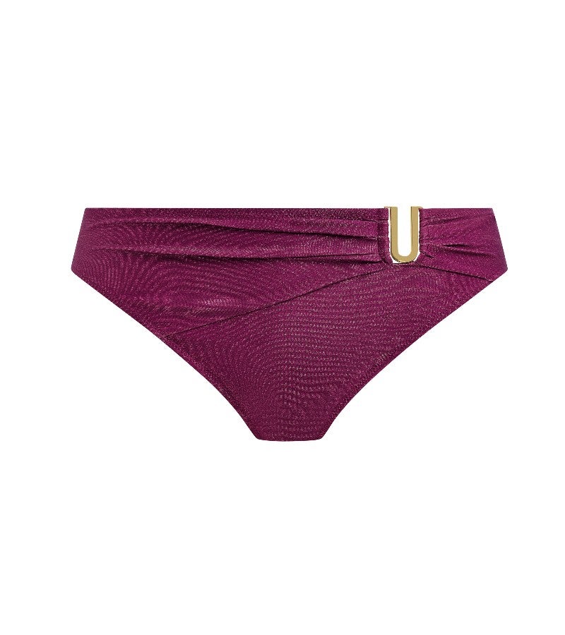 程よいカバー感のミディアムカバレージデザイン。全面に裏地を施し、安心感のある快適な着心地に仕上げています。さらにメタリックゴールドカラーのトリムをあしらい、上品なアクセントをプラス。太陽の下でも熱くなりにくい仕様で、リゾートシーンでも快適に着用いただけます。