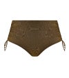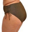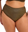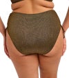ウエスト位置で心地よくフィットするビキニブリーフ。やわらかなメタリックヤーンを織り込んだ、上品にきらめくストレッチ素材を使用し、華やかな印象に仕上げています。