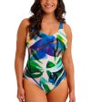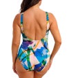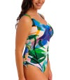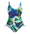 美しいデコルテを演出するVネックラインを採用し、内蔵されたアンダーワイヤーがバストをしっかりと支えます。背面はやや深めにカットされたスクープバックで、快適なフィット感を実現。サイドは調節可能なタイ仕様で、ギャザーによるルーシング効果がお腹まわりをやさしくカバーするとともに、レッグラインのカバレッジもお好みに合わせて調整できます。