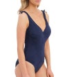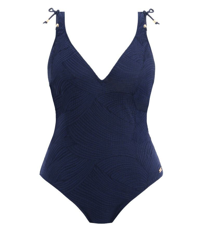 深いVネックカットのスイムスーツ。