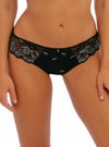 ウエスト回り、バックレッグ部分にストレッチレースをあしらったゴージャスなブラジリアン型ブリーフ。360度華やかなデザイン。