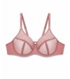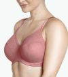 こちらのEnora UWミニマイザーブラは、ジャカードのシアーレース(やや透け感のある生地)を使用しており、無理なくバストを縮小するように設計されています。3枚パネルを縫製したカップはバストを押しつぶすことなくカプセル化し、2.5センチ~4センチ(約1カップ)ほどサイズダウン。薄いメッシュのライナー(裏地)をほどこしたフルカバレージタイプのカップです。マイクロファイバーのウイングにもメッシュのライナーをほどこし、しっかりとバストをサポートしてくれます。