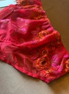 ジュエルというその名の通り、煌めきと幸福感溢れるデザインです。イメージカラーはまさにフルーティーなレッド。レッド、ピンク、オレンジの釜糸を使い光沢をだしたフラワーモチーフの刺繍が肌の上で舞っているよう。前面は