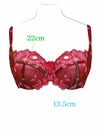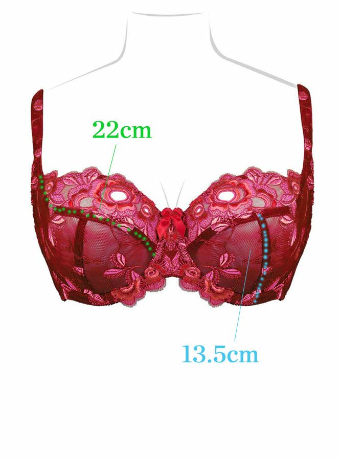 ジュエルというその名の通り、煌めきと幸福感溢れるデザインです。イメージカラーはまさにフルーティーなレッド。レッド、ピンク、オレンジの釜糸を使い光沢をだしたフラワーモチーフの刺繍が肌の上で舞っているよう。バルコニーシェイプのカップはチュールが主役。ストレッチは効かせずに薄手のカップでもしっかりリフトアップされる縫製です。細部までこだわった1枚です。デザイン詳細はイメージ写真をご参照ください。