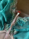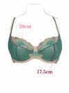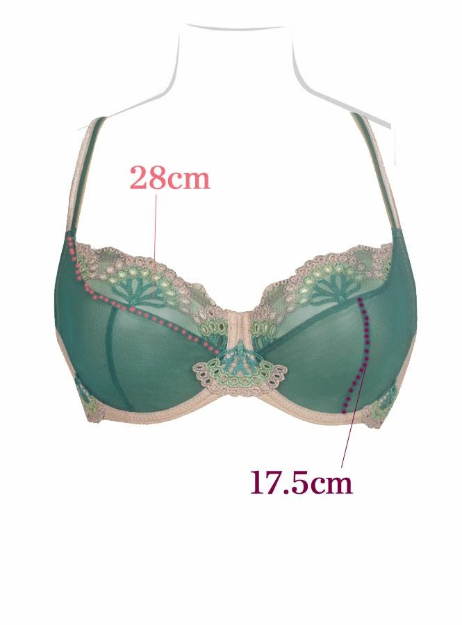 東欧の湖畔をイメージしたキラっと光るアプリケや刺繍をマットなグリーンチュールに合わせたデザイン。明るめトープカラーとの組み合わせで大人の上品なセクシーさを惹きだす1枚に。バルコニーシェイプのカップはチュールが主役。ストレッチは効かせずに薄手のカップでもしっかりリフトアップされる縫製です。
