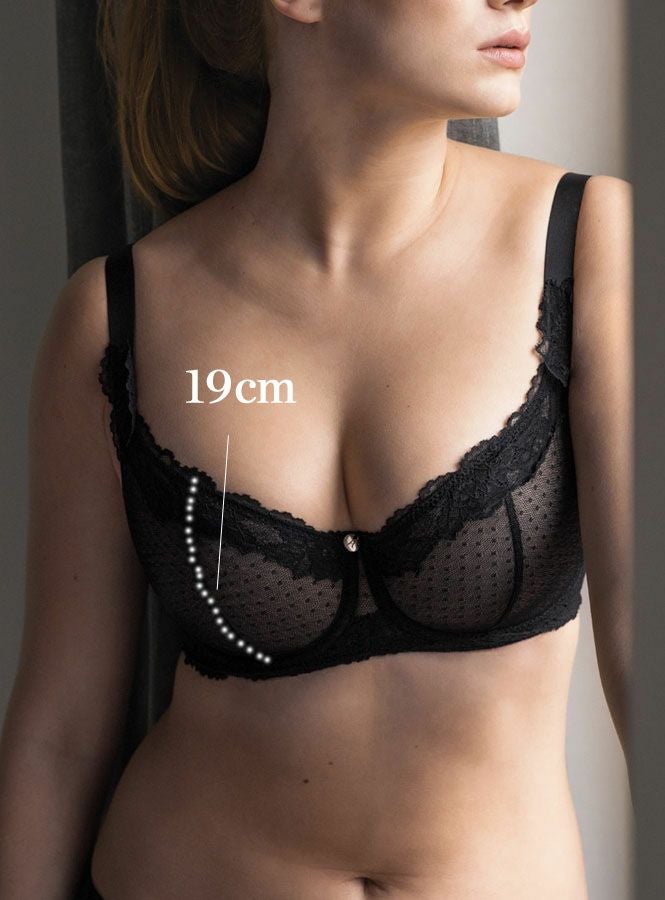 ) 透け感のあるシアーチュールが主役のデザインですのでバストトップが透けます。薄手のトップスを着用される場合はニップレスの併用をオススメいたします。ウイングはストレッチの効いた上質なファブリック1枚仕立て。