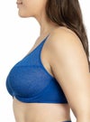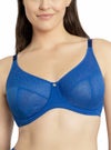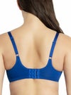 です。 3枚パネルを縫製したカップはバストを押しつぶすことなくカプセル化し、2.5センチ~4センチほどサイズダウン。 ストレッチ効果を最小限に抑えた生地はジャガード織の美しいファブリック。 薄いメッシュのライナーをほどこしたフルカバレージタイプのカップです。 マイクロファイバーのウイングにもメッシュのライナーをほどこし、しっかりとバストをサポートしてくれます。