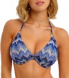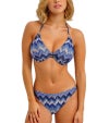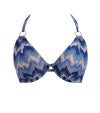 こちらのVネック型ホルターネックビキニは、デコルテを大胆に見せるセクシーな深めのVネックラインが特徴。パワーネットで裏地加工されたカップが、バストラインを美しく整えながらしっかりとサポートします。アンダーワイヤー構造ながら、フレームを省いた軽やかな設計で、抜け感のあるミニマルな印象に。トレンドのメタリックゴールド糸を織り込んだ生地が、光を受けて上品に輝きます。