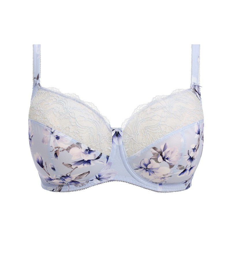 幅広のワイヤーが心地よいサポートを提供し、サイドサポート付きの3枚パネル縫製のカップがリフトアップと自然な前へのプロジェクション効果を実現する脇寄せサポート付きブラ。トップ上部レース部分には裏地が施され、さらなる安定感を確保。プリント加工された美しいパワーネットのウィングが脇、背中からバストをしっかりと支え、安定した着心地をもたらします。繊細なレースがトップカップを優雅に飾り、調整可能なショルダーストラップが体型に合わせた快適さを叶えます。中央フロントにはチャーム付きのリボンがさりげないアクセントとなり、上品な魅力を添えています。