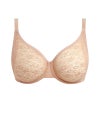 裏打ちのないシームレスカップが、肌に溶け込むような自然なバストラインを生み出すワイヤー入りノンパッドモールドブラ。縫い目のないップには、驚くほど柔らかなストレッチレースを使用しています。アニマルとフローラルを重ねた独自のレースデザインがほどよい華やかさを添え、ネックラインとアンダーアームにはボンディング加工を施すことで、洋服の下でも段差が出にくいフラットな仕上がりを実現しました。