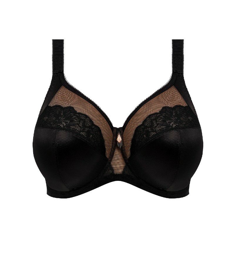 トップカップの特殊なカプセル化レースは、装いに響きにくい滑らかな仕上がりと、現代的で控えめな美しさを演出します。カップには、上質なサテン調のスムース生地を使用し、サイドには柔らかなチュールを重ねることで、胸を前へと整える美しいラインと確かなサポート力を両立しました。