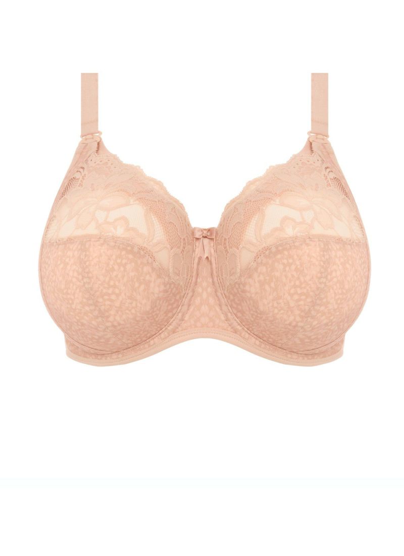 KKカップまでのサイズ展開で、ストレッチフローラルレースが素敵なElomi唯一の授乳用ブラ。簡単に開閉ができるワンクリップ式です。バンド付きアンダーワイヤー、3枚パネルカップ、追加のサイドサポートが快適なフィットを提供し、湿気を逃がして一日中涼しく乾燥させる素材が特徴です。