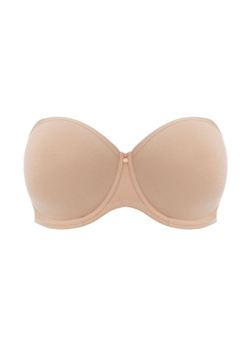 しっかりしたサポートと丸みを帯びた形成モールドカップのストラップレスブラです。バストラインにフィットするようにスイートハートネックラインという丸いVネックカットを採用。背中のフレックスボーンは食い込みを防いでくれます。シリコンコーティングが施された上部背面で肌に優しい安定したフィット感を提供します。取り外し可能なマルチウェイストラップで、多彩なルックを楽しめます。