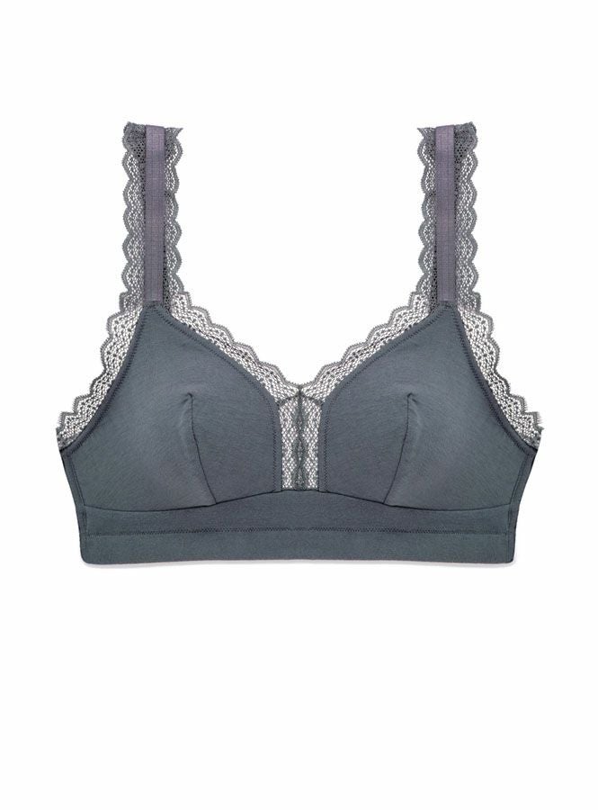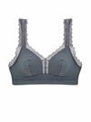 ストレッチレースを用いたサポーティブなブラレット(ワイヤーフリータイプ)。 レースをネックライン、ストラップ、背中にあしらったフェミニンなデザインです。 インナーライナーをほどこし、カップ内側のサイドスリングがバストを前に寄せキープしてくれます。 背中のJホックを留めていただくと、サポート効果がアップ!