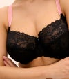 4枚接ぎカップにサイドサポートパネルを組み合わせ、優れたリフトアップ効果と前方への美しいプロジェクションを実現。LYCRA®を増量したパワフルなストレッチレースが、しなやかにフィットしながら確かなサポート力と立体的なシルエットを叶えます。