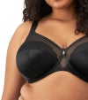 トップカップの特殊なカプセル化レースは、装いに響きにくい滑らかな仕上がりと、現代的で控えめな美しさを演出します。カップには、上質なサテン調のスムース生地を使用し、サイドには柔らかなチュールを重ねることで、胸を前へと整える美しいラインと確かなサポート力を両立しました。