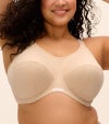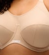 プラスサイズ設計に基づく構造で、独自のエンキャプスレーションテクノロジー(バストのカプセル化)を採用。独自のノンコンプレッション設計により、圧迫することなくバストを包み込むエンキャプスレート構造を採用。高いサポート力と快適性を両立しています。バストを一つひとつ包み込むことで高い衝撃吸収力を発揮し、優れた安定感と自然で美しいバストシルエットを両立します。