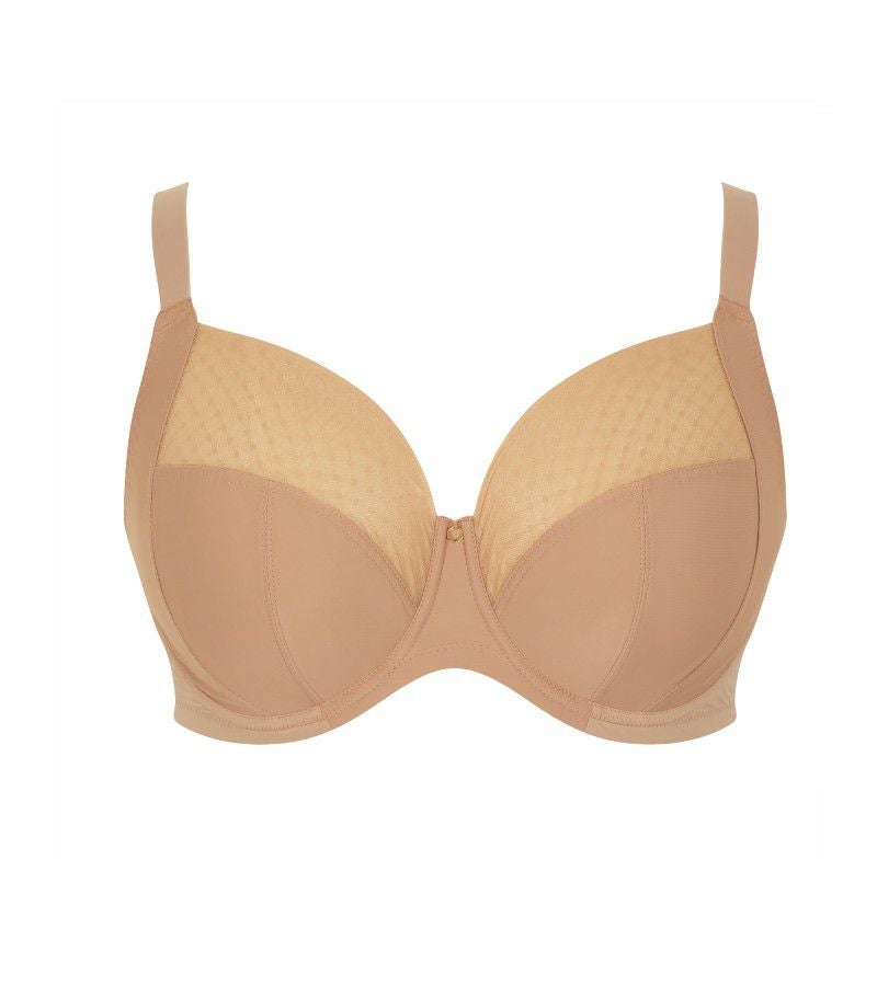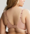 4枚のパネルを縫製したフルカップ。それぞれ4方向からバストを整え、綺麗なシルエットで着用いただけます。カップ上部の透け感のあるストレッチレースはバストの丸みに柔らかく沿い、顔まわりを明るく見せてくれます。カップ下部は上質なファブリックを使用。裏地をつけずにシンプルに仕上げています。普段使いにオススメです。