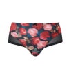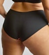 おへその下辺りまで、高さのあるディープブリーフです。ややストレッチを効かせ、ボディにしっかりフィットしてくれるスタイル。バックスタイルはシンプルな1枚仕立て。前サイドにはレースパネルをほどこし、フェミニンな印象に仕上がっています。