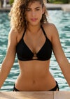 ワイヤーなしのシンプルな三角ビキニトップです。薄いパッド加工のある2つのパネルを垂直に縫製し、ワイヤーがなくてもしっかりバストが持ち上がったシルエットに仕上がるオススメのビキニ。センターのセクシーなカットがポイントです。