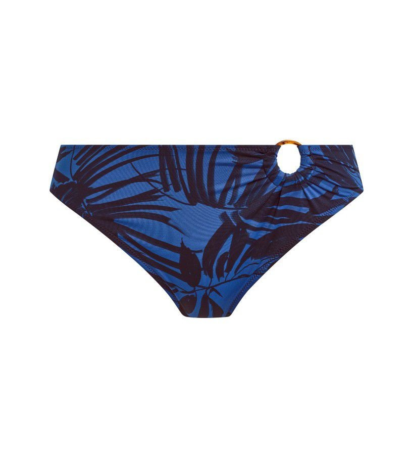 こちらは、ミディアムカバレッジのビキニブリーフ。フロントからバックまで丁寧に裏地を施し、ほどよい安心感と快適な穿き心地を叶えます。サイドにはべっ甲風のリングディテールをあしらい、シンプルな中にも洗練されたアクセントを添えています。