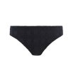 こちらのビキニブリーフは、ヒップに自然に沿うデザインで、脚をすっきりと見せるカッティングが特徴です。程よいバックカバレッジを備え、表面にはクロシェ風のレイヤーを重ねて仕上げています。